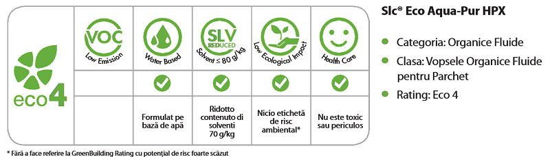 Lac pe bază de apă, ecologic, pentru tratarea parchetului, ideal in Green Building. Bicomponent, cu un conţinut scăzut de solvenţi, respectă mediul şi sănătatea operatorilor. Slc Eco Aqua-Pur HPX de la Kerakoll, pune in valoare naturaleţea lemnului şi asigură nivele foarte ridicate de protecţie la uzura şi abraziune, a pardoselilor de lemn, supuse inclusiv traficului pietonal extrem.